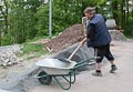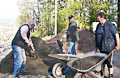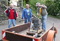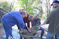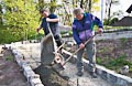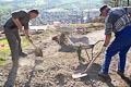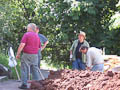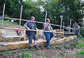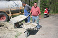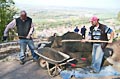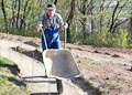 Zum Auffüllen der Baugrube rings um die Plattform mussten 260 Schubkarren voll Erde den Abhang hinuntergefahren werden. Ungefähr 5.500 Schaufeln mit Material wurden dabei bewegt. Jeder der anwesenden Helfer legte ca. 8 km bergab und bergauf zurück - mit Schubkarre. Also ein wahrer Kraftakt zum Abschluss!