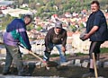 Wieder waren viele fleißige Hände am Werk und das Projekt "Aussichtsplattform" ist ein ganzes Stück weitergekommen. Mittlerweile ist der Serpentinenweg eingefasst. Auch Pfarrer Schwab zeigte sich sehr angetan.