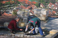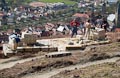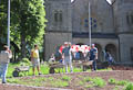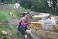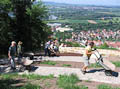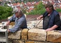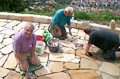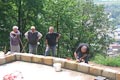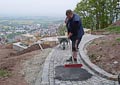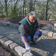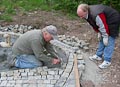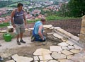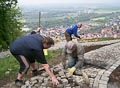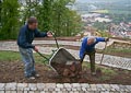 Nicht nur an den Wochenenden finden sich zahlreiche Helfer ein, auch unter der Woche opfern viele ihre Freizeit und treiben den Bau mit Riesenschritten voran. Wie man sieht, leisten sie hervorragende Arbeit und die Anlage wird ein echtes Schmuckstück für Zeil. Inzwischen ist ein großer Teil des Serpentinenwegs gepflastert. Bis Ende der Woche soll das "Gröbste" geschafft sein - wenn das Wetter hält!