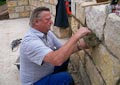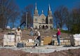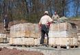 Am heutigen Montag kam die Firma Brecht, um die Sandsteinmauer für den Einbau des Geländers vorzubereiten. Als das geschafft war, konnte die Firma Dang das Geländer fertig montieren.