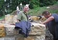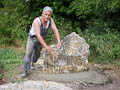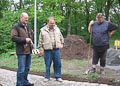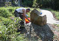 Ein dekorativer Natursteinfindling am Rand des gepflasterten Serpentinenwegs bildet einen weiteren Blickfang auf dem Areal der Aussichtsanlage. Am Samstag, dem 17. Juli haben einige der unermüdlichen Vereinsmitglieder (nach Anlieferung durch die Firma Weinig) den gewaltigen Stein aufgestellt. Etwas erleichtert wurde die Arbeit dadurch, dass die extreme Temperatur der Vortage etwas nachgelassen hatte. Ganz Deutschland, seit Wochen unter einer Hitzeglocke, konnte endlich mal durchschnaufen...