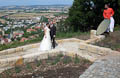 Dass die Aussichtsplattform mittlerweile ein beliebtes Fotomotiv ist und - zusammen mit dem herrlichen Panorama von Zeil und dem Maintal - einen malerischen Hintergrund auch für Hochzeitsfotografien liefert, ist auf dem Bild ganz rechts zu sehen!