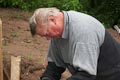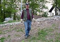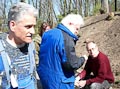 Am Samstag, dem 22. April, wurden für die neuen Weinstöcke dann die Pfosten gesetzt und die Drähte gezogen. Diese Arbeiten führte v.a. der erfahrene Winzer Tobias Zink durch, der auch das entsprechende Spezialwerkzeug mitbrachte. Aber bis man erst mal die Löcher tief genug ausheben konnte, verging eine Menge Zeit und es floss so mancher Schweißtropfen. Statt mit Tobias' Spezialbohrer die Löcher auszuheben, musste man v.a. mit Stichel, Hammer und Pickel zu Werke gehen, weil der Untergrund sich als überaus steinig erwies (war wohl einst die Abraumhalde beim Bau des Käppele). Letztendlich kam dann aber doch noch alles zu einem guten Ende.