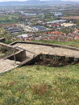 Einen ersten Schönheitsfleck hat die noch nicht einmal fertige Aussichtsplattform schon: Wahrscheinlich waren es Kinder oder Jugendliche, die sich gerade den so liebevoll gestalteten Serpentinenweg ausgesucht haben, um ein Feuerchen darauf zu schüren. Hässliche Rußflecke sind die Folge...